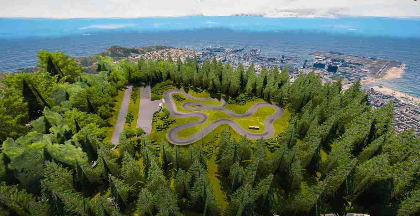 - Includes a pit lane with garages for vehicle modifications and repairs.