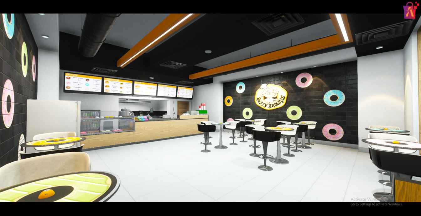 - Interior Details: An open-plan seating area, service counter with donut display cases, and a warm color scheme that welcomes every visitor.