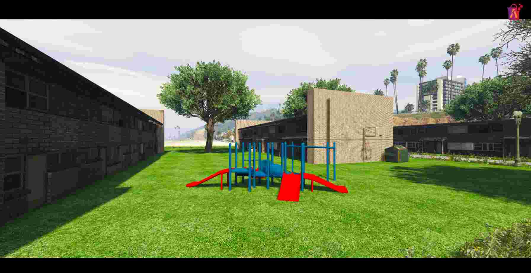 Expansive Outdoor Recreation: Featuring multiple buildings and recreational amenities, perfect for diverse in-game activities.