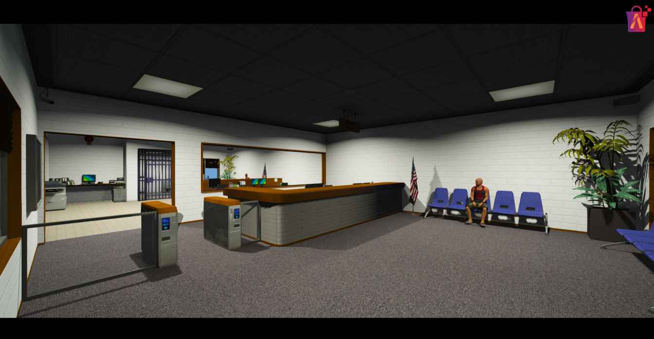 - Lobby and Reception Area: A welcoming space for NPC interactions and crime reporting.