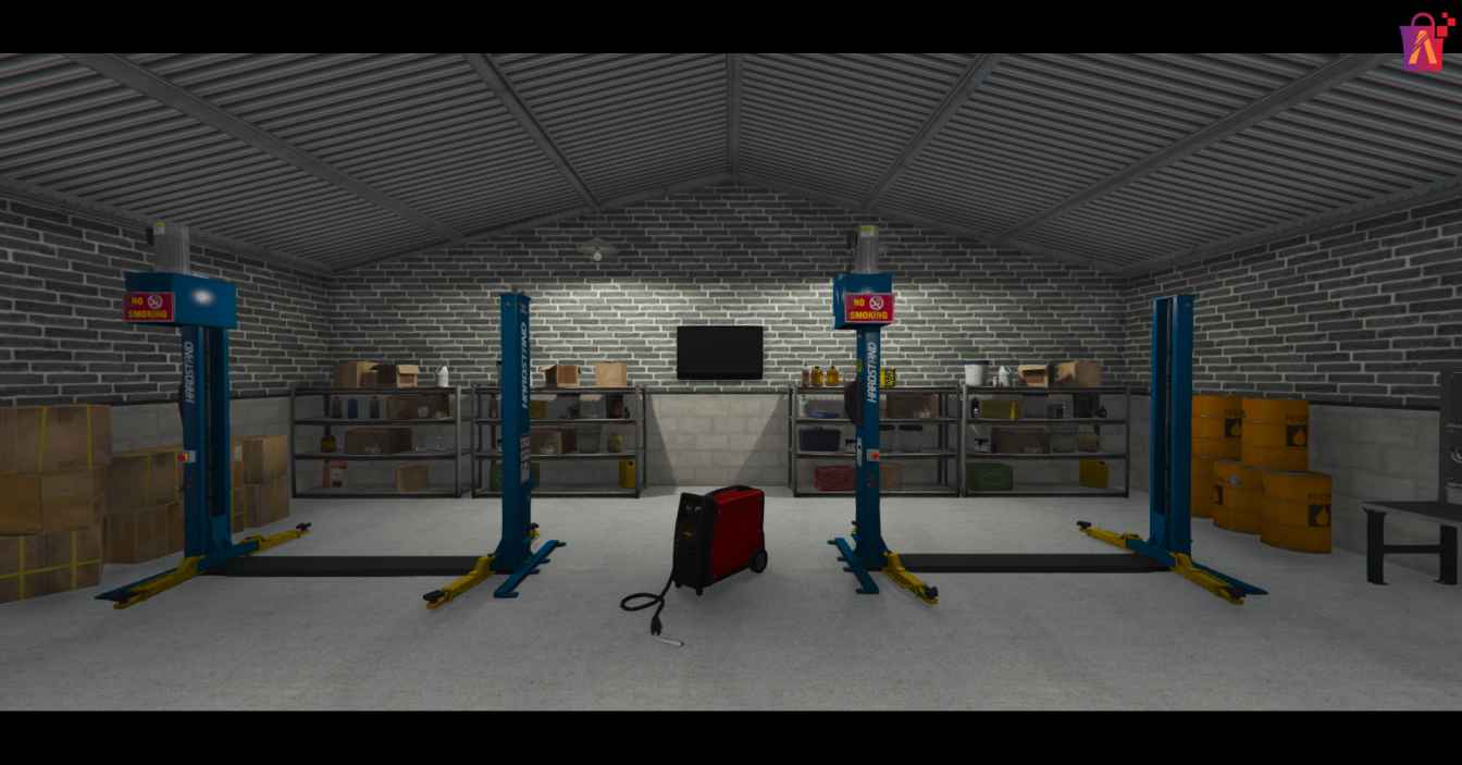 - Detailed Interior: Authentic workshop environment with tools, car lifts, and workbenches for realistic mechanic roleplay.